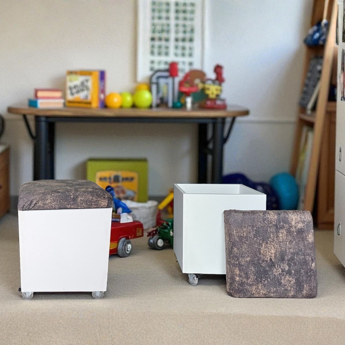 Meet the Sit n Stow Mobile Padded Ottoman Storage Chair — our compact storage ottoman that rolls where you need it and locks when you’re ready to sit.