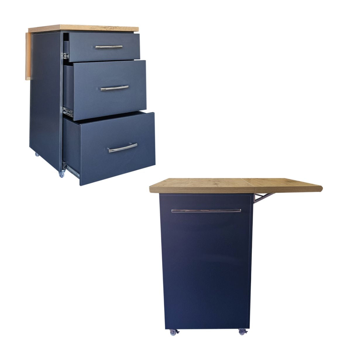 Small Kitchen Island on Wheels with Fold-Out Table & Drawers